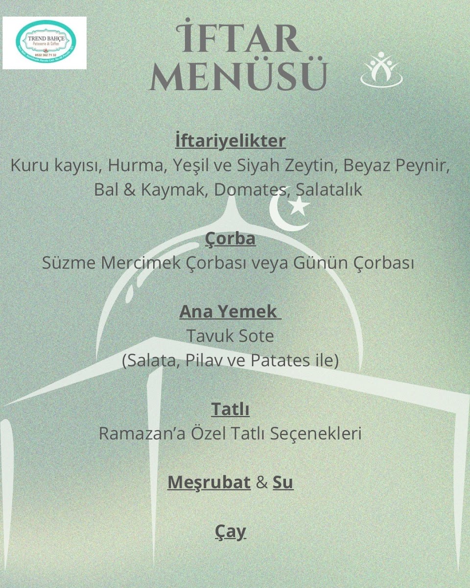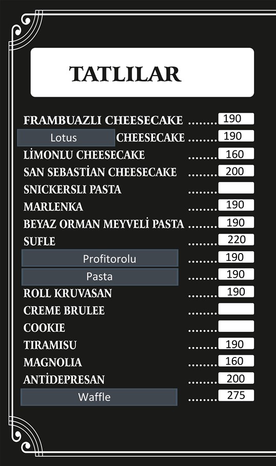 The menu at Trend Bahce Patisserie & Coffee offers a variety of options suitable for different occasions such as breakfast, casual coffee breaks, and light meals. It features a selection of coffee beverages crafted with attention to detail, alongside a range of pastries and desserts. The offerings include breakfast items, suitable for morning dining, as well as sweet treats that complement coffee service.